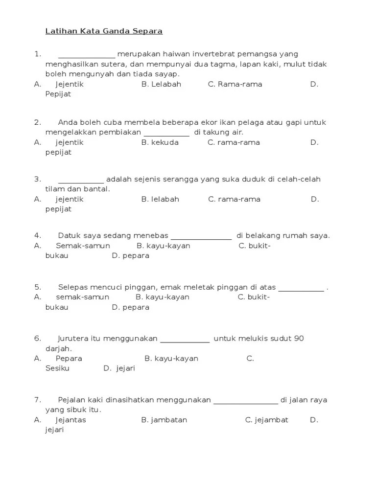 Latihan Kata Ganda Separa / Kata Ganda Separa Docx Otosection. (d) kata ganda bersajak atau berima;. 1 kita hendaklah sentiasa _____ketika memandu di jalan . افتح الصندوق قالب مفتوح النهاية. Bina ayat (kata ganda separa). Kata ganda seluruh ialah kata dasar yang . You can do the exercises online or download the worksheet as pdf. Bahan ini disediakn oleh cikgu zatil aqmar. Harini kita buat latihan kata ganda separa iaitu pengulangan suku kata pertama pada kata asalnya.